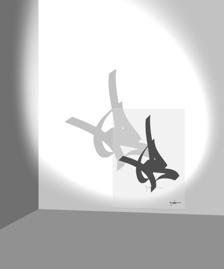 I found these pics in the archives, the originals are probably destroyed. It's a work from 2002, playing with shadows the way gobos in theaters use shadow-images to temporarily build a scene.